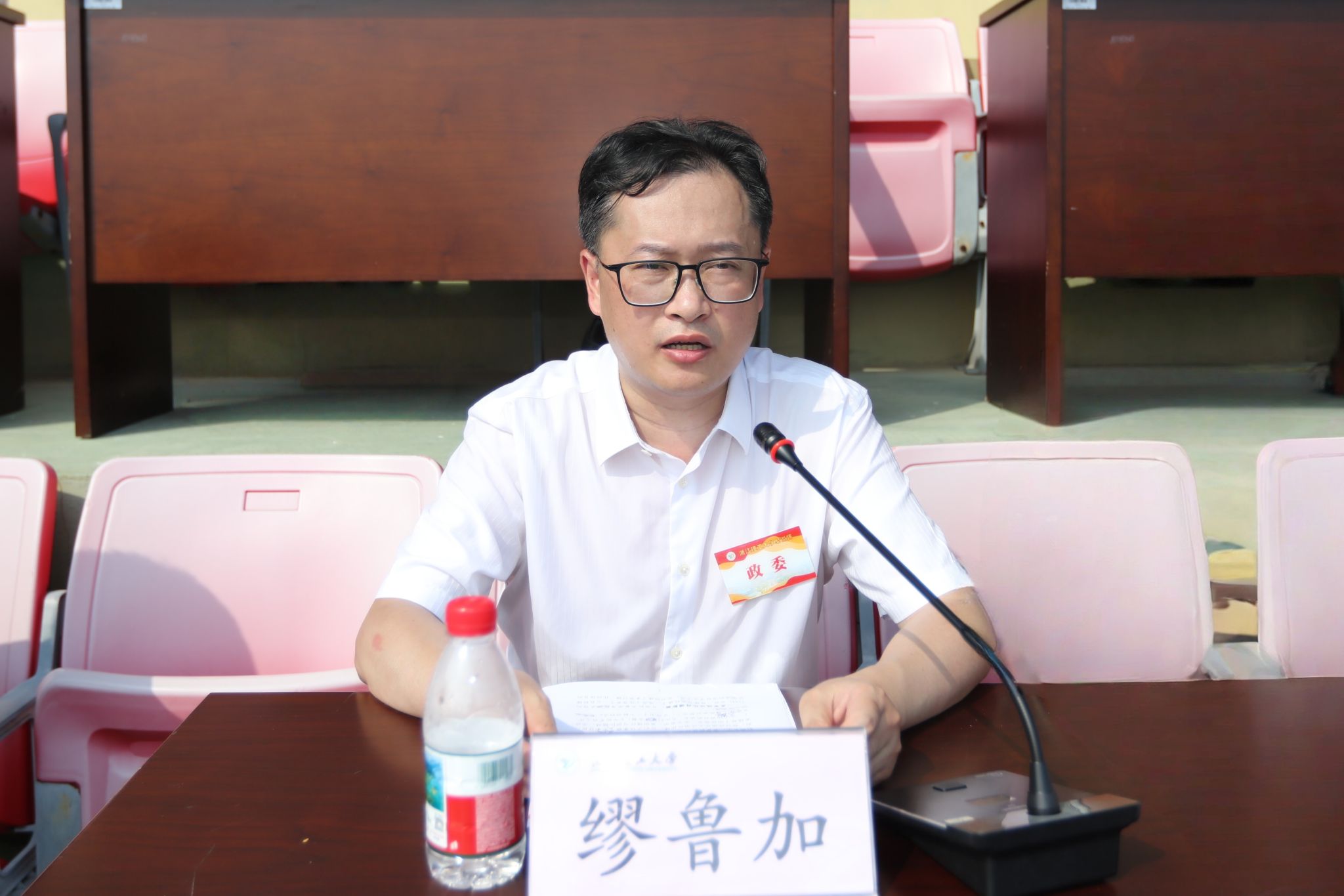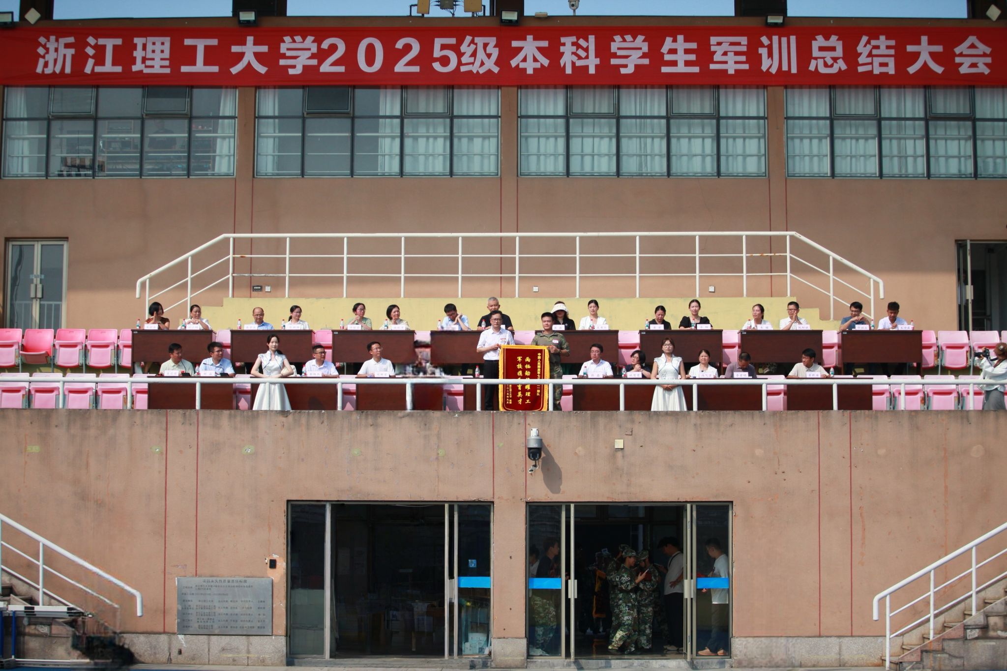 缪鲁加讲话。他代表学校,向承训部队全体官兵致以崇高敬意与诚挚感谢,向参与军训工作的教职工、学生表示亲切慰问,向圆满完成两周训练任务的2025级新生表示热烈祝贺。缪鲁加指出,军训是大学生活的序章,新生们在骄阳炙烤与骤雨洗礼中,不仅掌握了军事技能,更铸就了国防观念、安全意识、爱国情怀与团队精神,实现了由内而外的成长。他总结本次军训的三项工作成果:一是军地协作再谱新篇,承训部队与学校携手组建素质过硬、作风优良的教官团队;二是淬炼过程彰显担当,教官严格施训、新生刻苦参训,相关部门与教职工做好保障;三是成果展示振奋人心,各营科目展示是新生交出的首份青春答卷,展现了“浙理”学子风采。