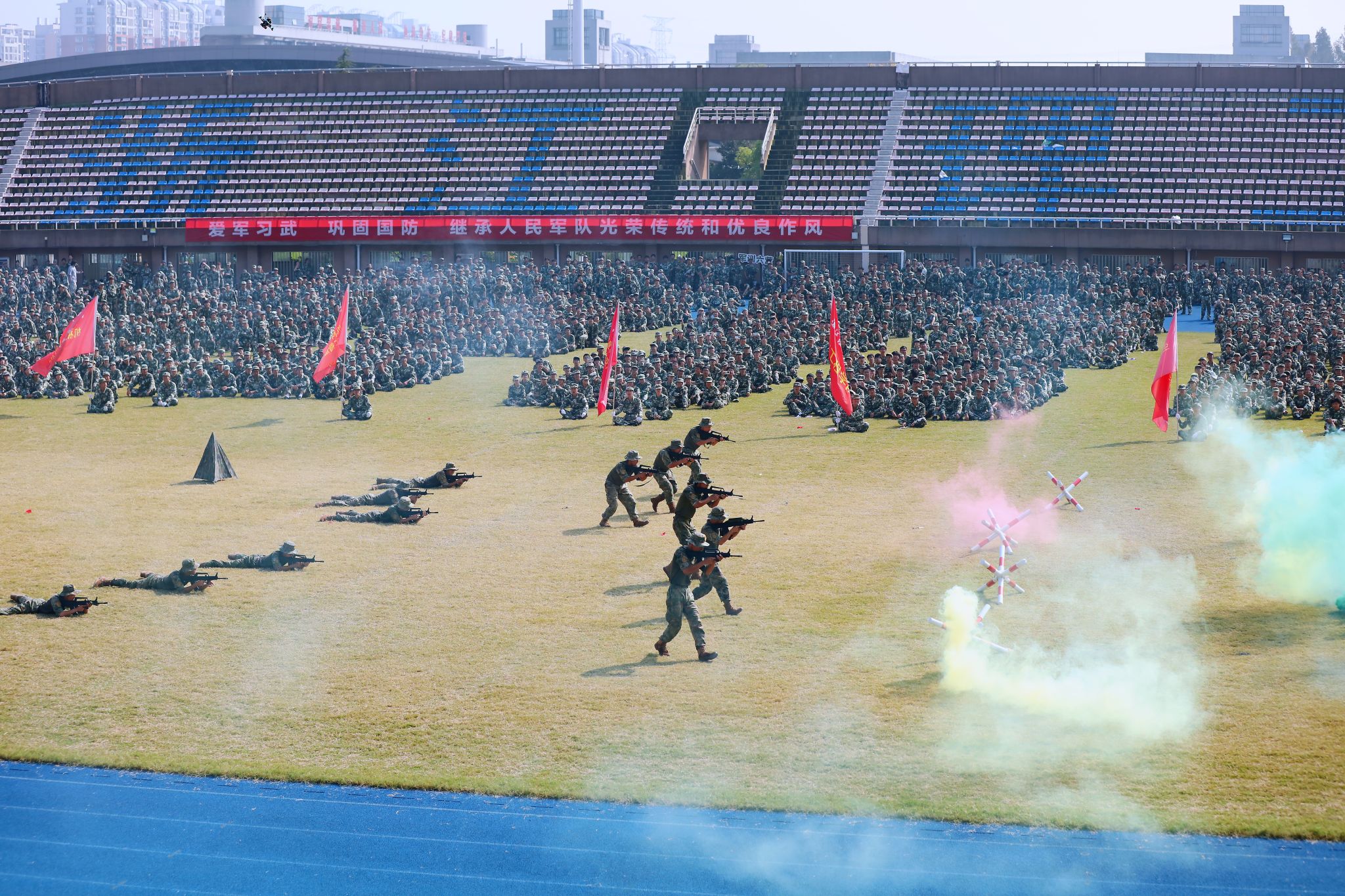 分列式后,新生们又展示了刺杀操、匕首操、格斗术、分队战术等军事技能,一招一式之间尽显浙理学子们昂扬向上的精神风范。