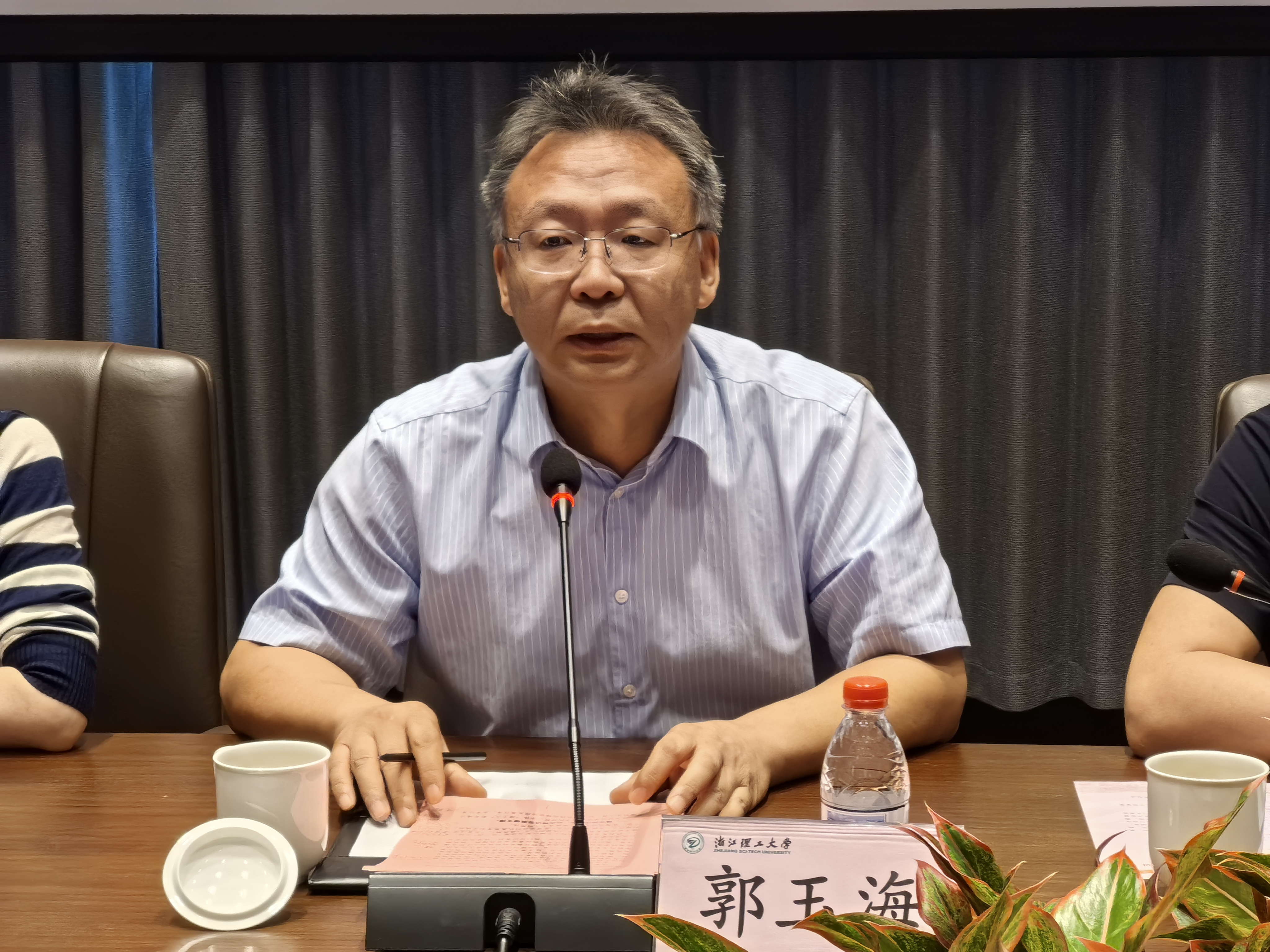 郭玉海作总结发言。他首先对校区发展成绩表示肯定,并对临平区的鼎力支持和全校师生的共同努力表示感谢。他强调,“临理同心”校地协同是学校“反哺”临平区的应有之义,更是助力学校冲刺“双一流”的重要载体。对下一阶段校区建设,他强调要在“硬支撑”“软实力”上下功夫。一要聚焦内部治理,通过强化党建引领、筑牢安全底线、深化校园品牌建设、加强系统谋划,夯实校区高质量发展的硬支撑;二要深化协同联动,以大学科技园建设为载体,推进学科建设与地方产业、校地资源、校区建设的多方协同,强化临平管办的统筹、协调、监督职责,形成“一盘棋”工作格局,全面提升校区发展的软实力,共同将临平校区建设成为特色鲜明、水平过硬、校地共赢的优质校区。