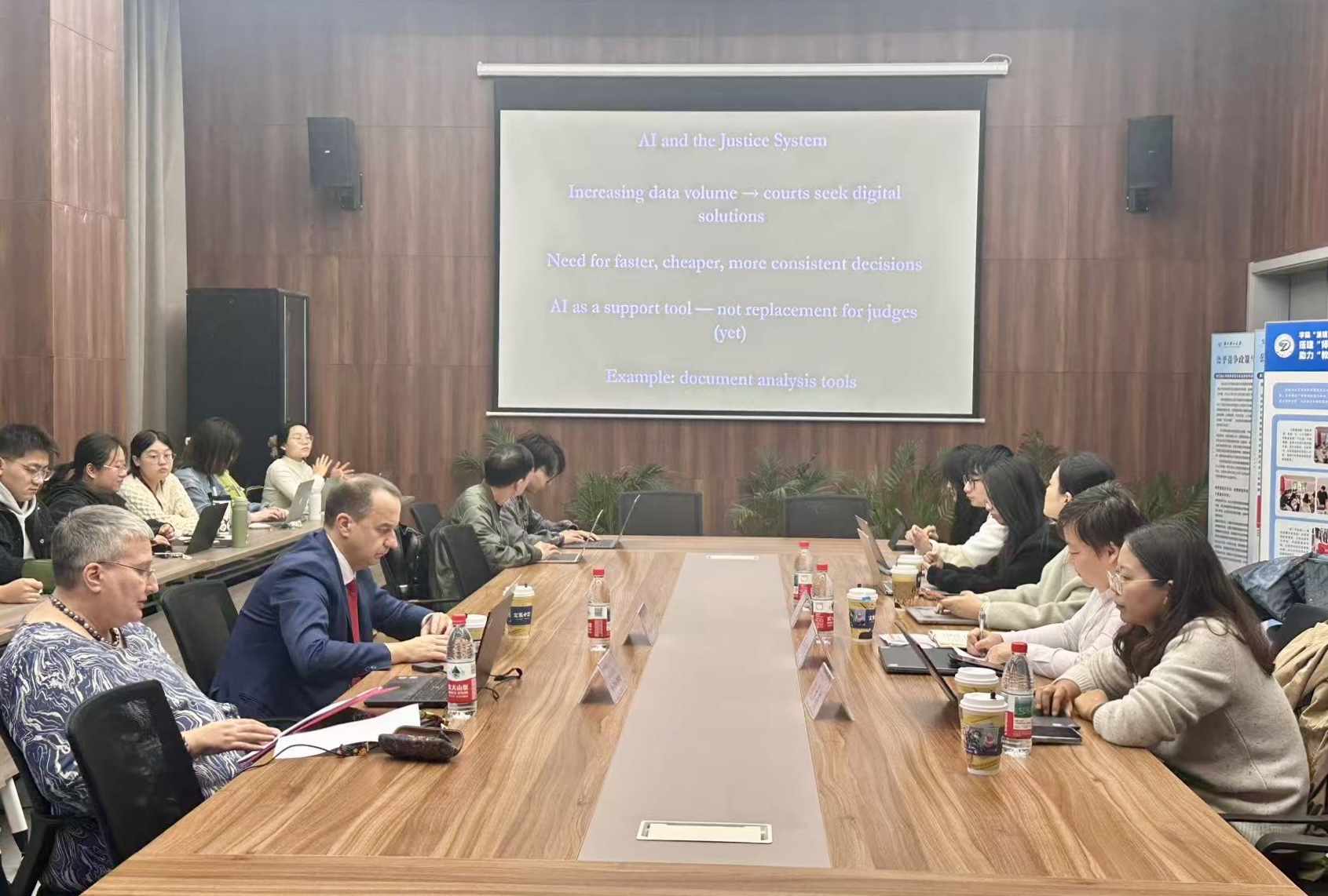 访问期间,金卡·弗拉加还面向法学与人文学院师生作题为《民事司法领域人工智能问题选析(Selected AI Issues in Civil Justice)》的专题讲座,深度剖析AI在民事司法领域中的应用与挑战,提出人机协同的有效路径,并与师生展开深入交流。代表团一行还参观了临平校区、万事利集团等。