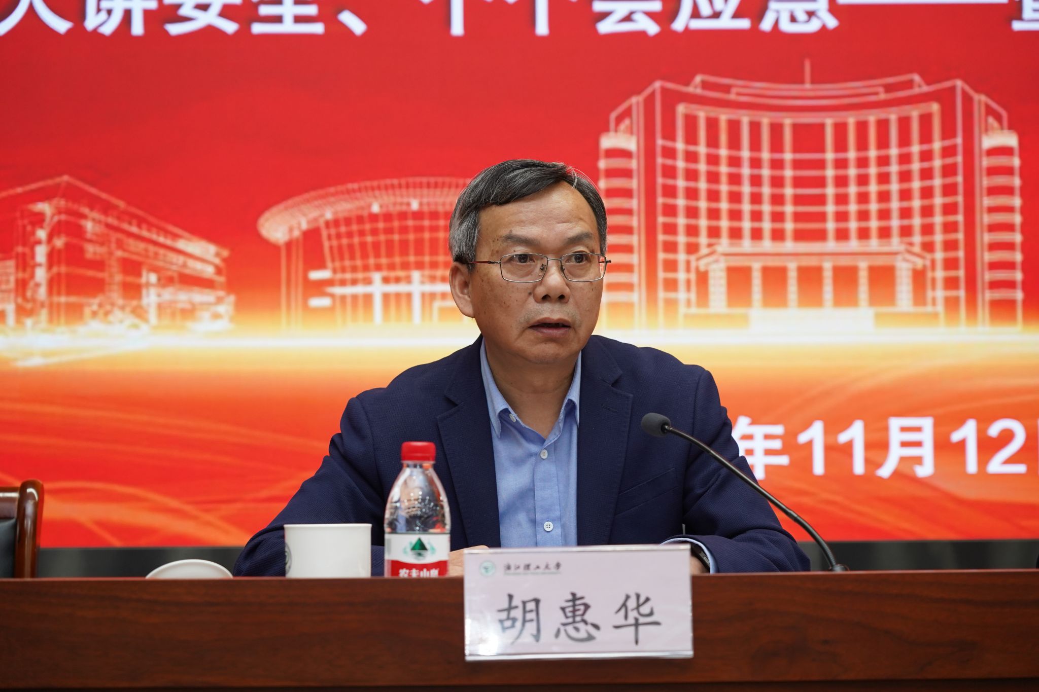 郭玉海致辞。他强调,实验室安全是校园安全稳定的核心支柱,安全文化是实验室安全管理的灵魂,更是学校落实立德树人根本任务的关键环节。围绕本次安全月活动,他提出三点工作要求:一是压实责任链条,筑牢安全根基;二是聚焦重点任务,扎实推进活动落地;三是坚持标本兼治,健全长效管理体系。