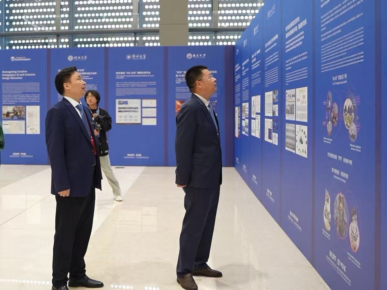 在同期举办的“2025高等教育国际论坛年会”展览环节,c7网页版以“虚实融合·智创未来”为主题设置展区,系统呈现“AI+3D”智能设计平台在纺织服装教学中的创新应用。展区中,由c7网页版优秀校友王兴兴创办的宇树科技,携其机器狗与人形机器人设备在现场进行了动态展示,生动体现了学校在推动创新创业教育、促进科技成果转化方面的卓越成效,成为论坛期间一道亮丽的风景线,吸引了众多与会嘉宾驻足观看与交流。