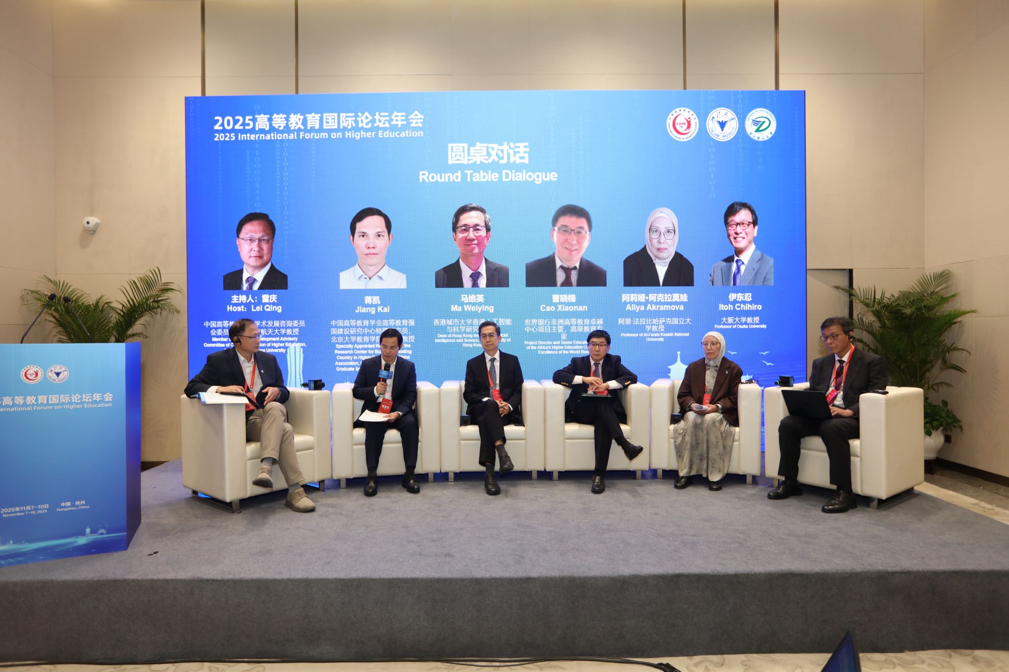 在圆桌对话环节,中国高等教育学会高等教育强国建设研究中心特聘研究员、北京大学教育学院院长蒋凯,香港城市大学香港人工智能与科学研究院院长马维英,世界银行非洲高等教育卓越中心项目主管、高级教育专家曹晓南,阿里·法拉比哈萨克国立大学教授阿莉娅·阿克拉莫娃,大阪大学教授伊东忍等5位嘉宾,就创新人才的内涵、培养路径、高校教学与科研平衡、人工智能时代教育变革等议题展开深度对话。中国高等教育学会学术发展咨询委员会委员、北京航空航天大学教授雷庆主持圆桌对话。