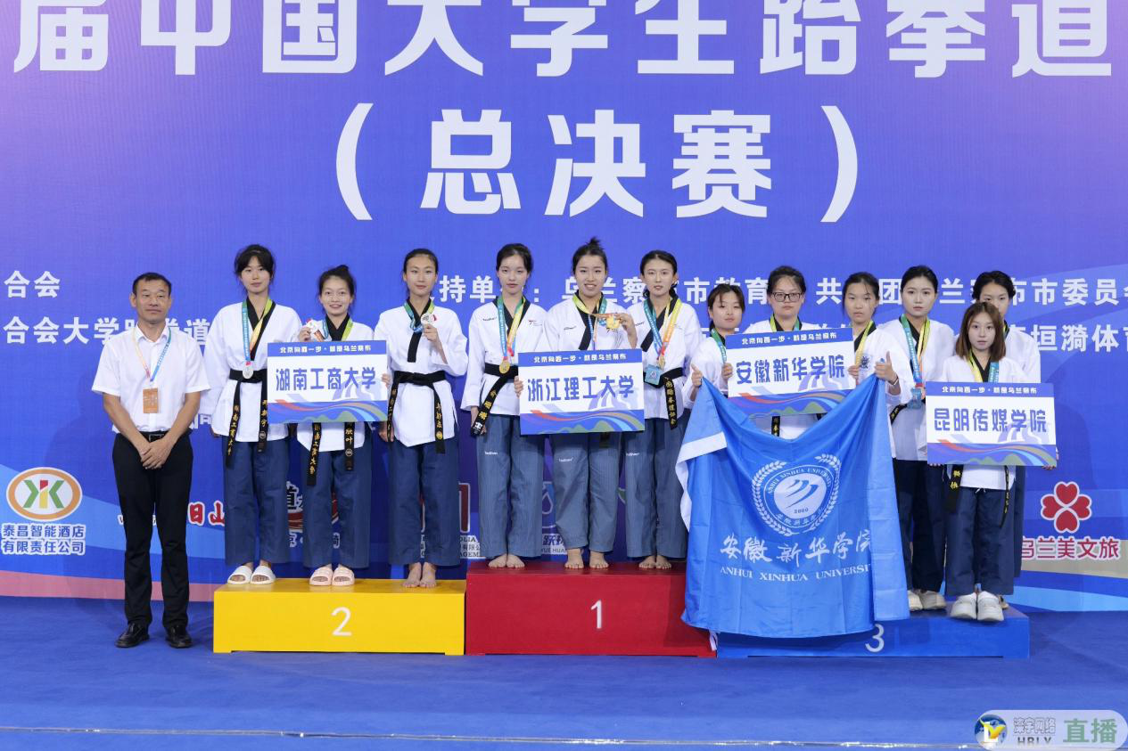 我校派出体育教研部主任兼党委书记惠悲荷担任领队,曾平、谢烽两位老师担任教练,10名入围总决赛的运动员组成参赛阵容。全体队员秉持“学校荣誉至上,个人拼搏争先”的竞技精神,在暑期集训中克服高温酷暑,通过精细化训练不断磨练意志、提升技艺。在比赛中,选手们更是以“厚德立身、博学增智、敦行致远”的精神为指引,展现出精湛技术与坚韧品格,最终斩获2金2银4铜及4个第五名的优异成绩。其中,杨卓(纺织科学与工程学院)、俞珊珊(马兰戈尼时尚设计学院)、丁子琦(马兰戈尼时尚设计学院)荣获甲组女子团体段位品势冠军;秦异豪(建筑工程学院)与俞珊珊搭档夺得甲组混双段位品势冠军。此外,信息工程学院陈文慧同学荣获“优秀运动员”称号,谢烽老师被评为“优秀教练员”。