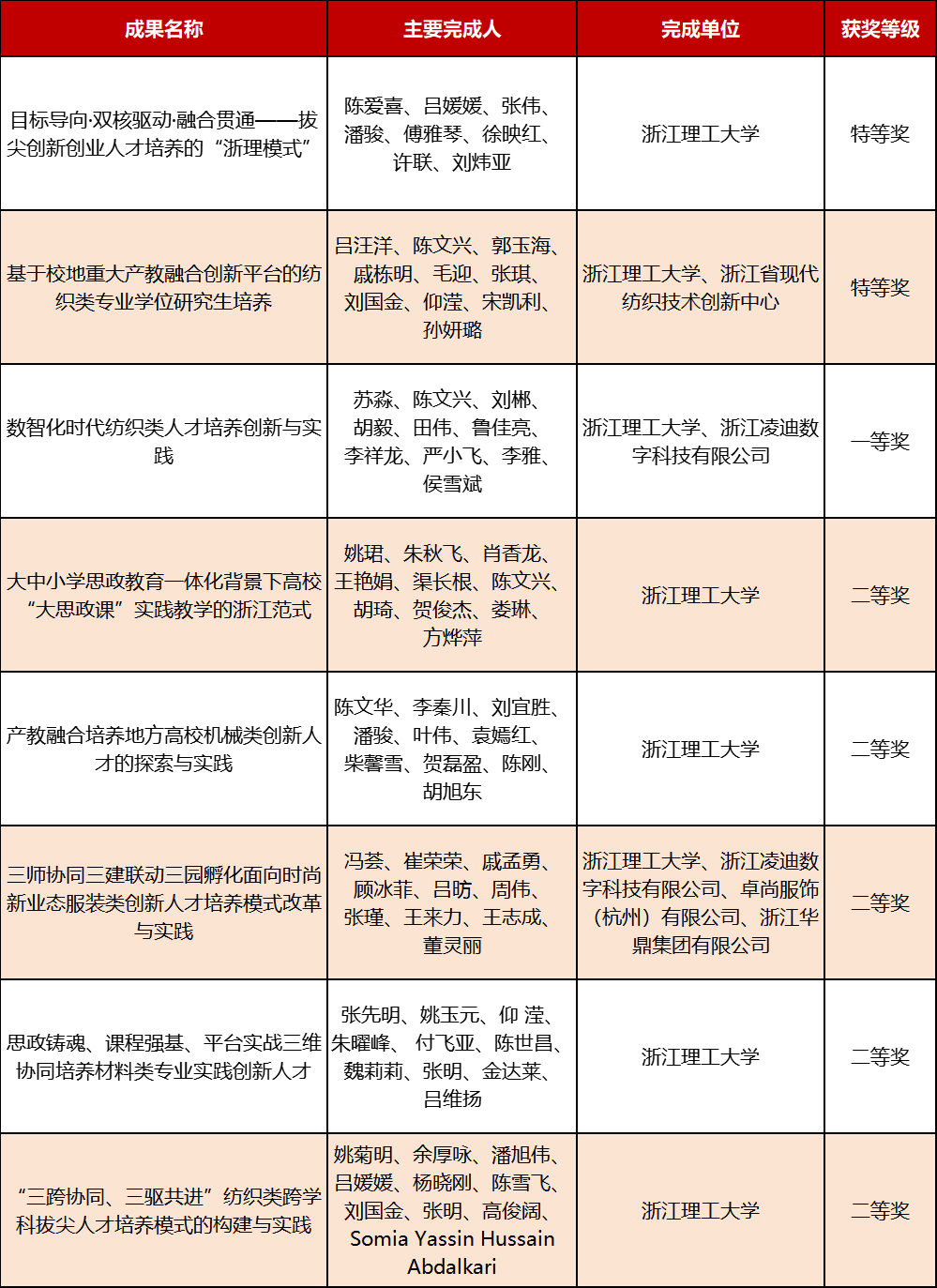 学校2025年浙江省教学成果奖获奖名单(第一完成单位)