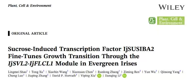 近日,由建筑工程学院球宿根花卉创新团队的李丹青老师,任梓铭老师联合浙江大学园林研究所,在国际著名期刊Plant, Cell & Environment发表了题为“Sucrose-Induced Transcription Factor IjSUSIBA2 Fine-Tunes Growth Transition Through theIjSVL2-IjFLCL1Module in Evergreen Irises”的研究论文,c7网页版建筑工程学院为论文最后通讯单位。